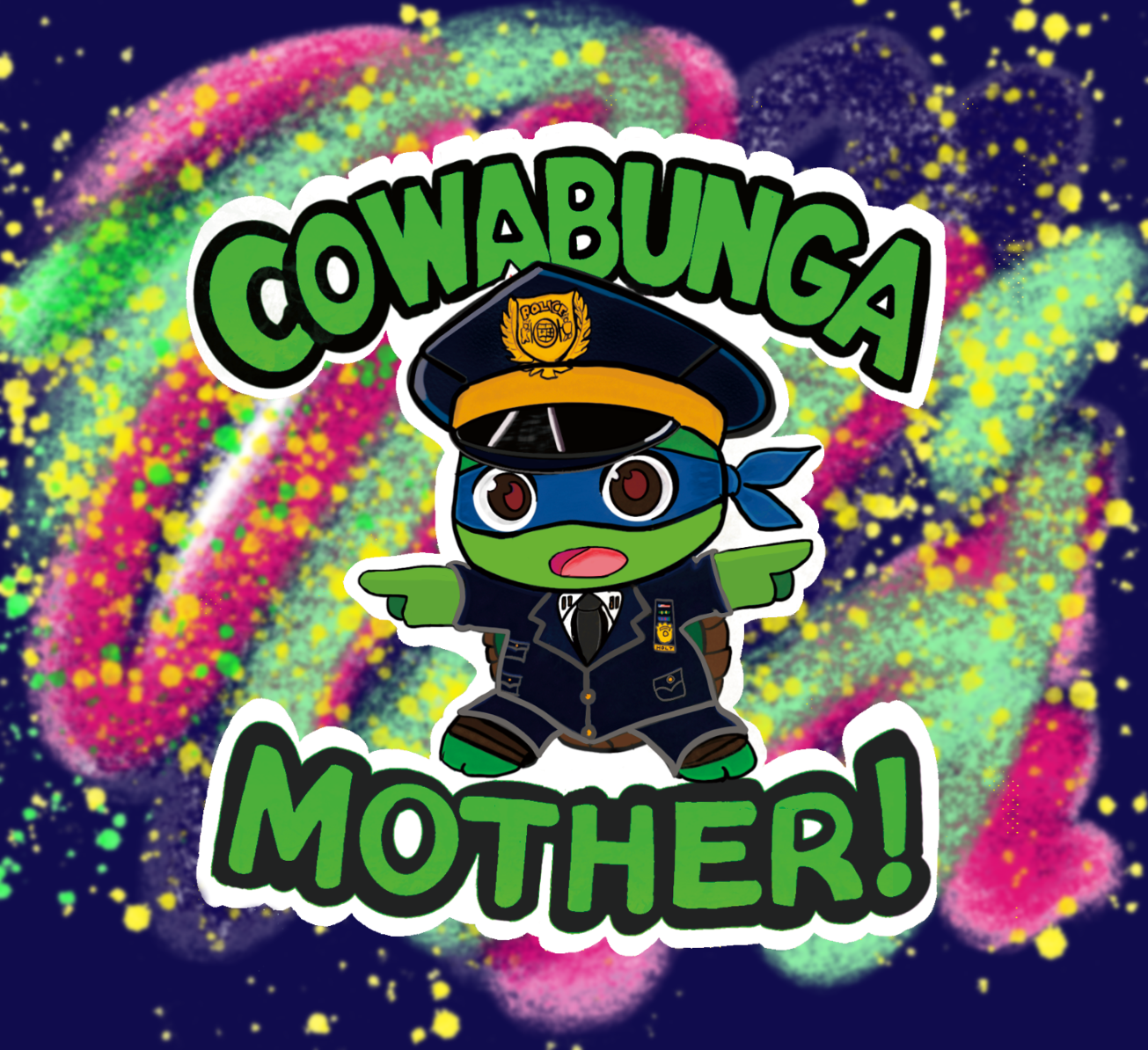 Holt, the totally tubular turtle bursting through and yelling "Cowabunga Mother!" is a real thing.